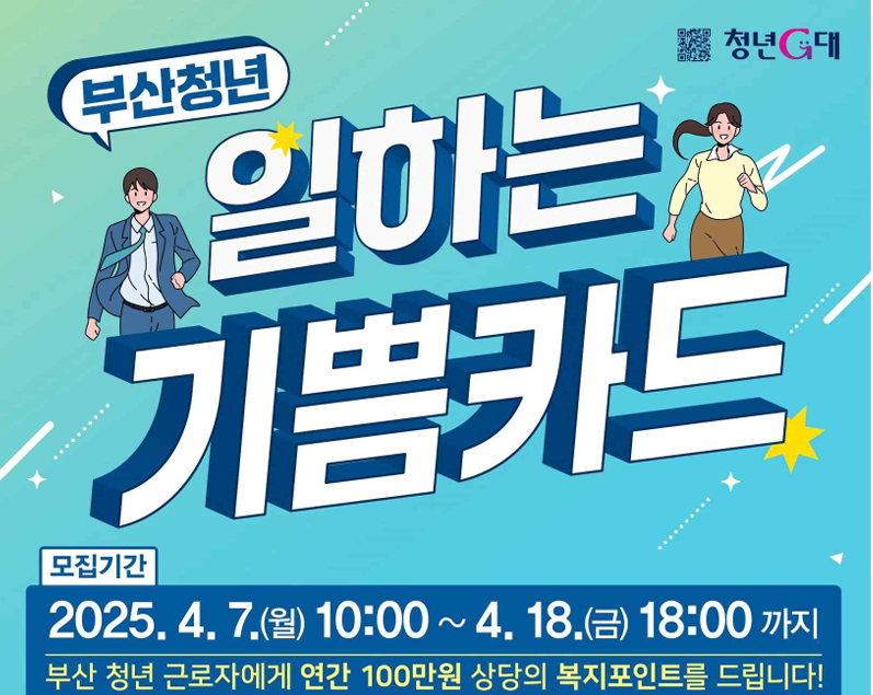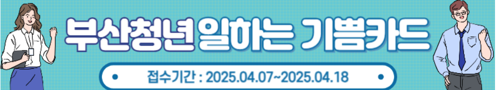 2025년 4월 7일 월요일 10시부터 부산청년 일하는 기쁨카드 홈페이지에서 신청 가능합니다.